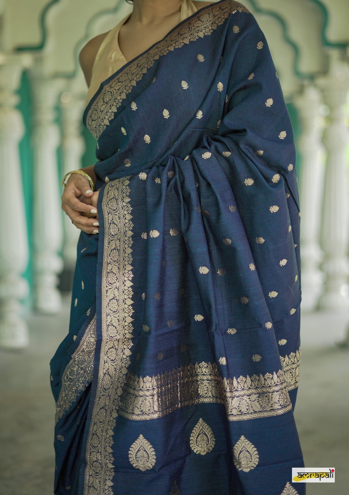 Beautifully woven with traditional zari motifs & jacquard border for a rich ethnic look.
