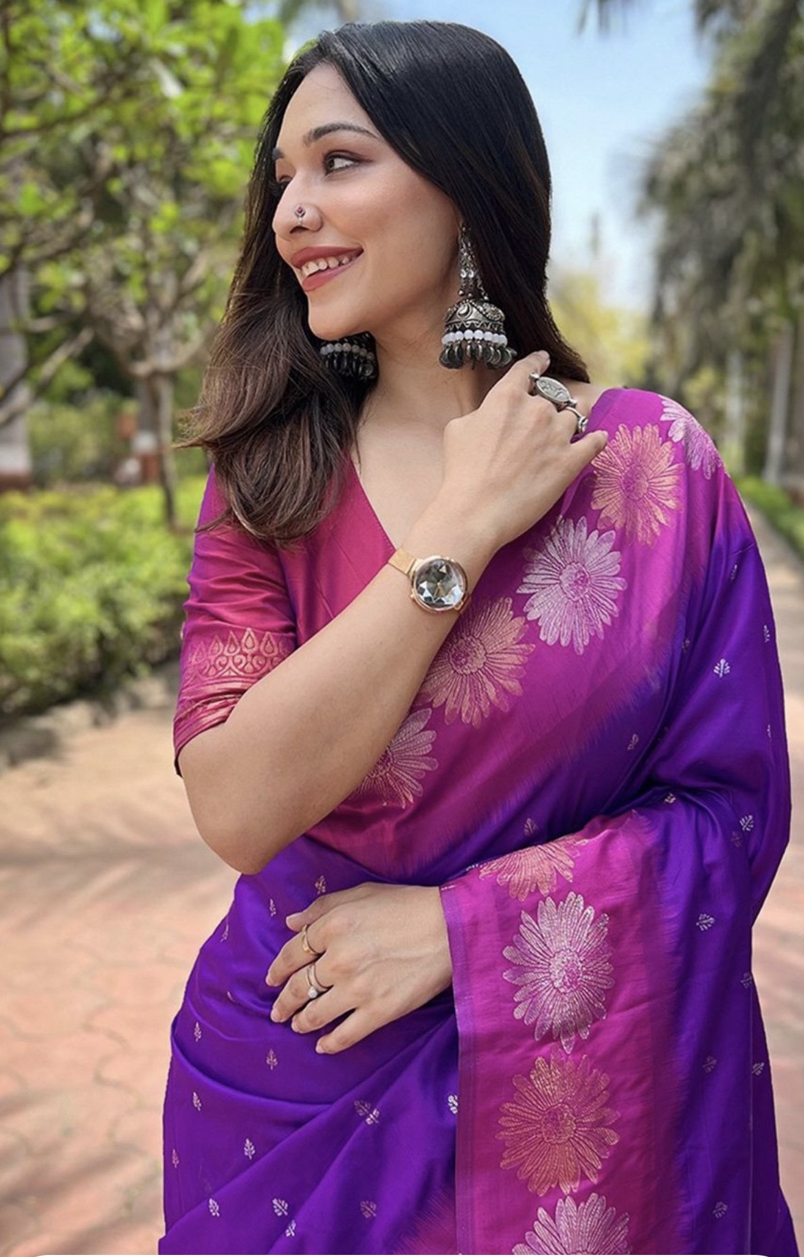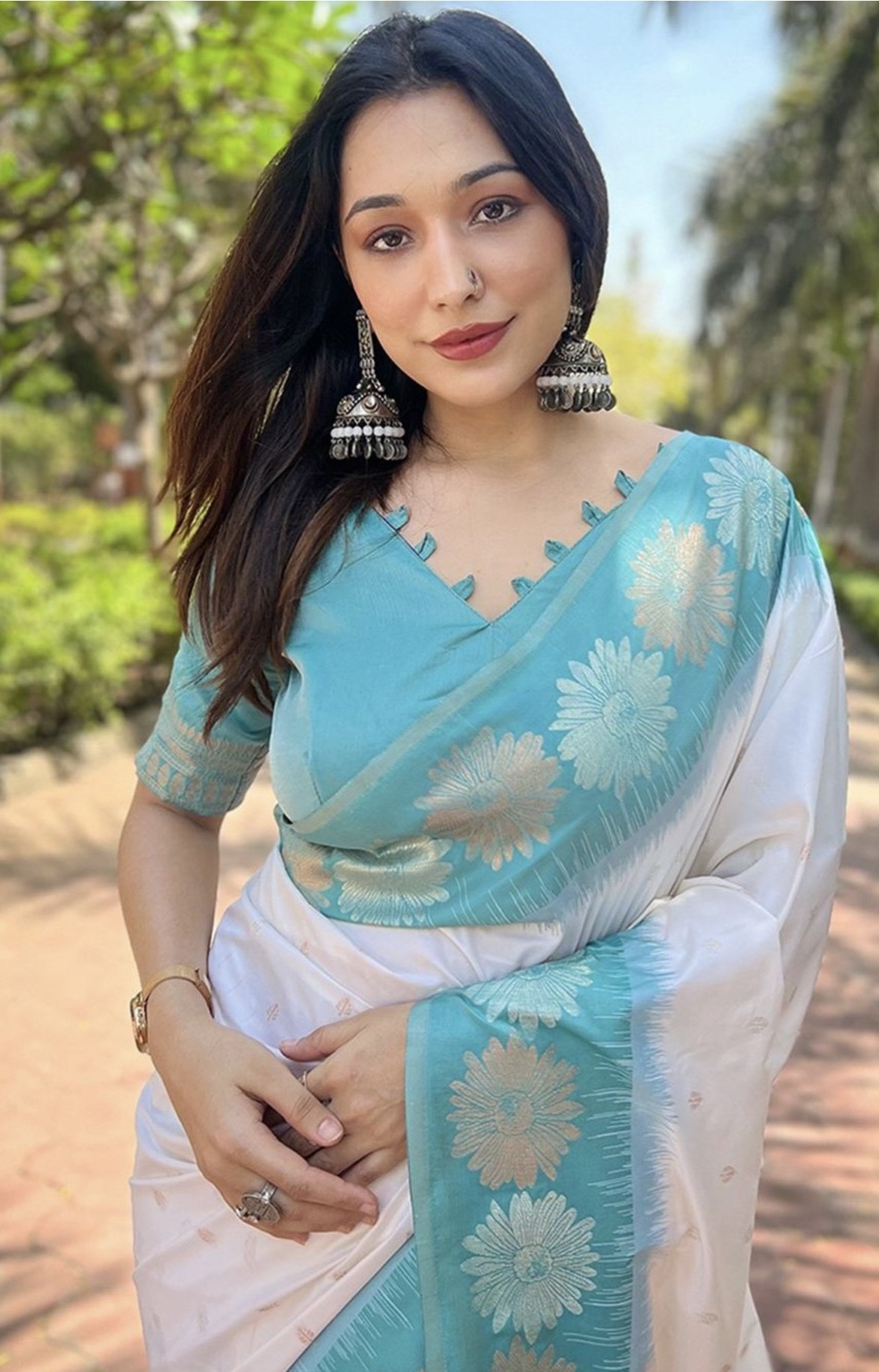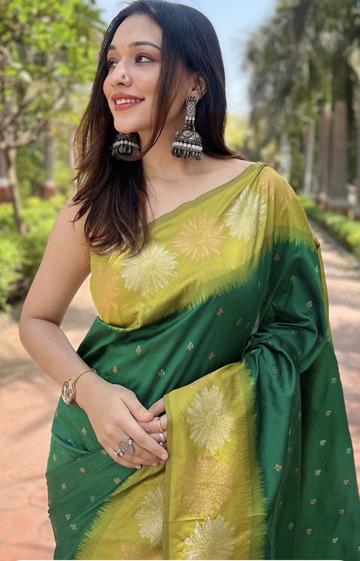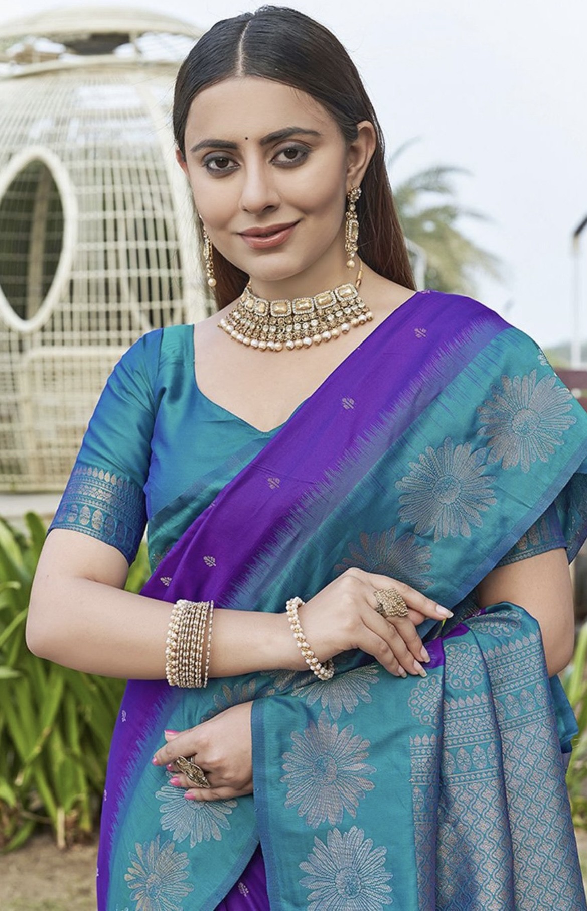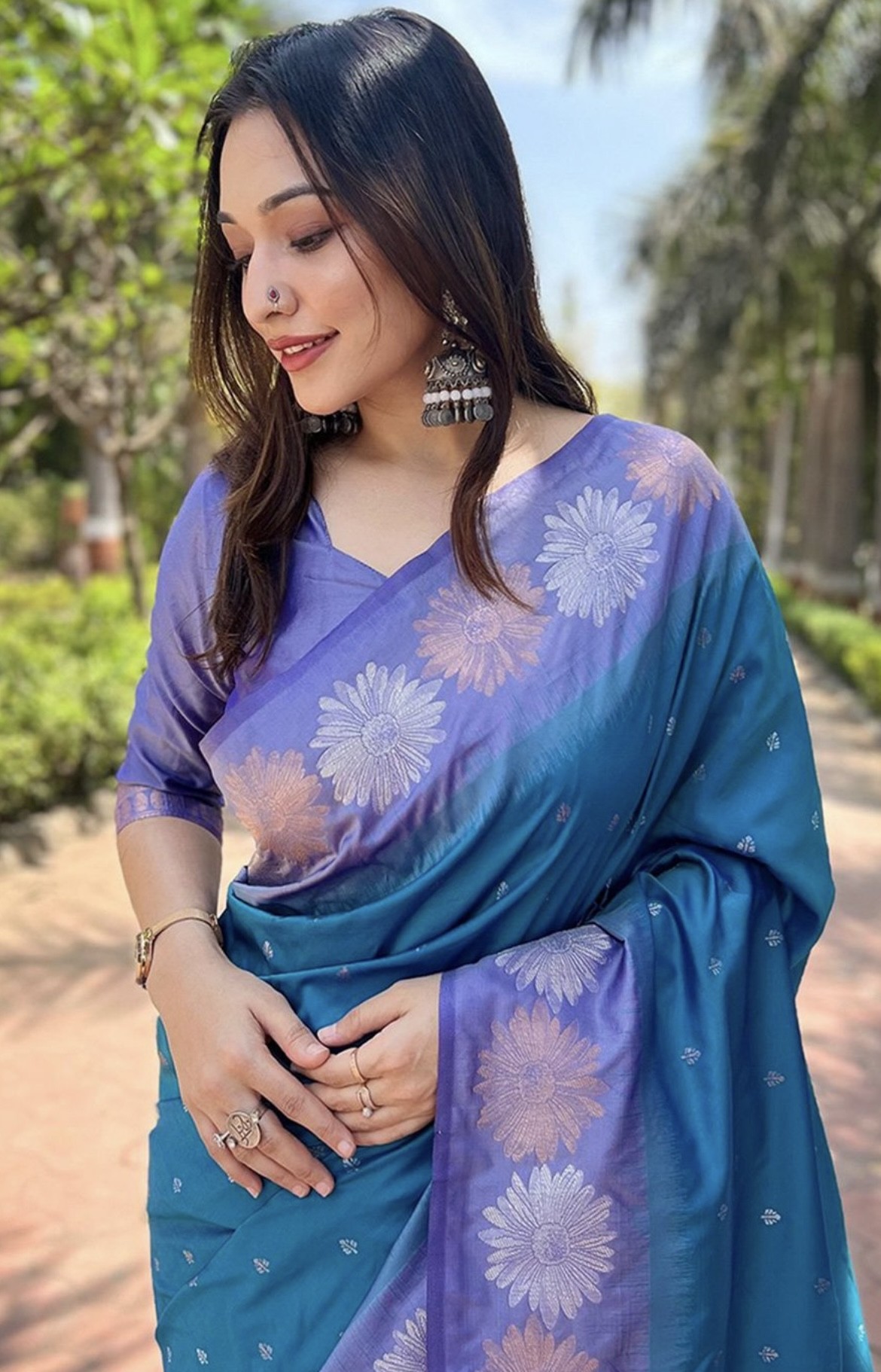 Beautifully woven with traditional zari motifs & jacquard border for a rich ethnic look.